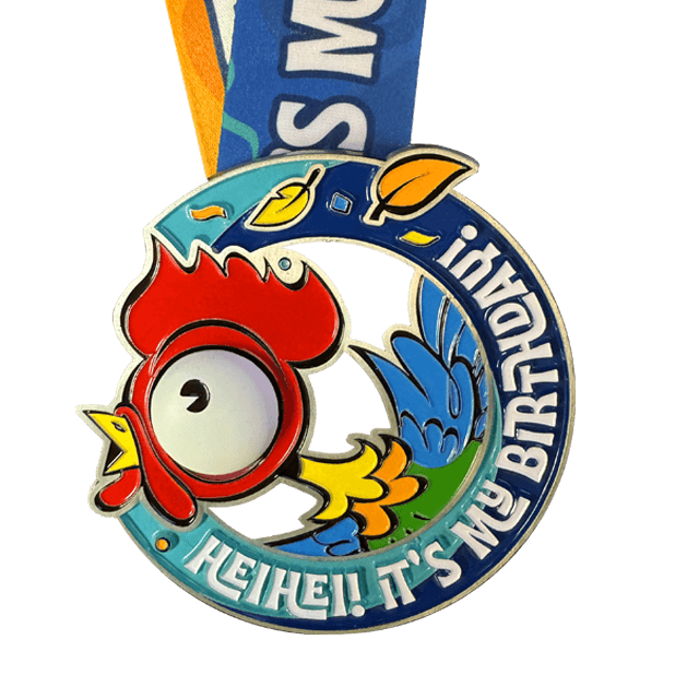 Inspired by everyone’s favorite wacky rooster from Moana, this adorable medal features HeiHei in all his confused glory. True to his directionless nature, his 3D eye spins a full 360 degrees—because let’s face it, HeiHei never really knows where he’s going.